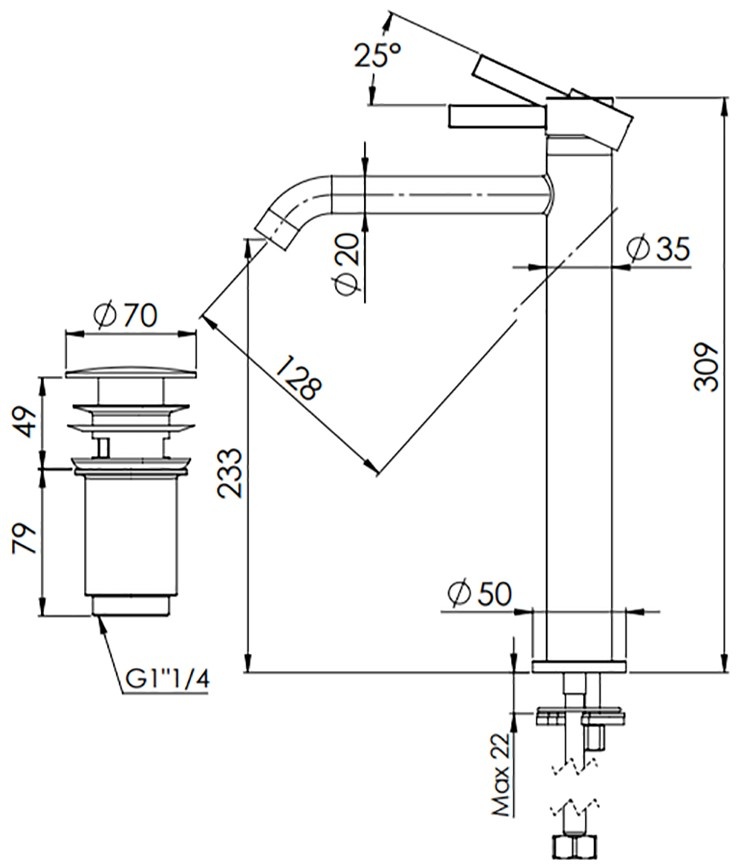 Înălțime pipă233 mm
