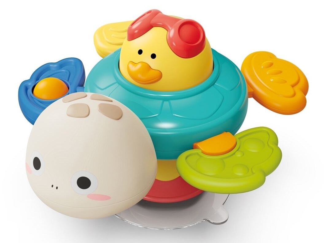 Ventuză puternică, ce permite fixarea jucăriei pe suprafețe netede: masă, oglindă, fereastră sau cadă