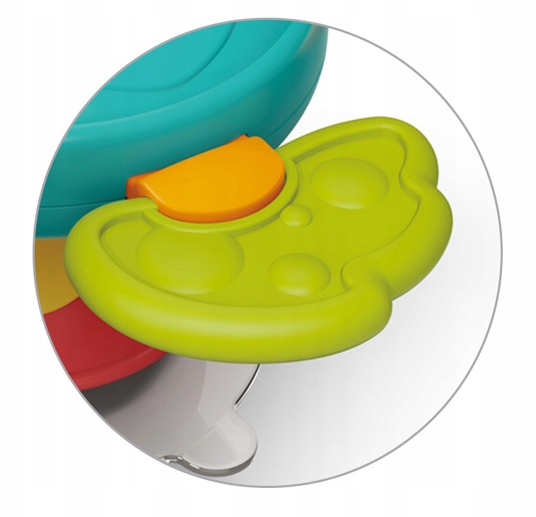 Elemente interactive: corp rotativ, buton apăsabil, zornăitoare și inel pentru dentiție