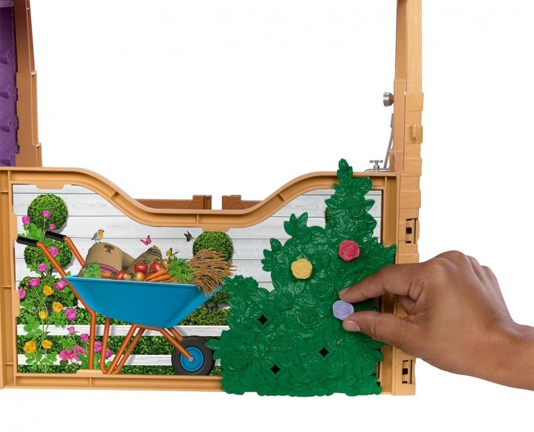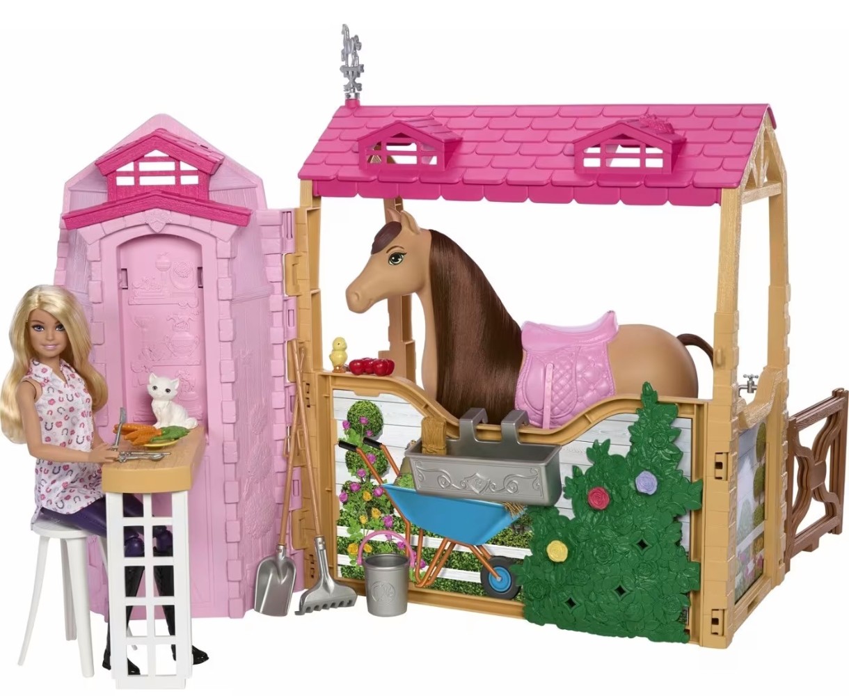 Cu șase zone de joacă, copiii pot explora diferite activități alături de păpușa Barbie și calul său de jucărie. Stația de hrănire oferă o varietate de legume delicioase, pentru ca micuții să se simtă ca niște adevărați îngrijitori de cai.