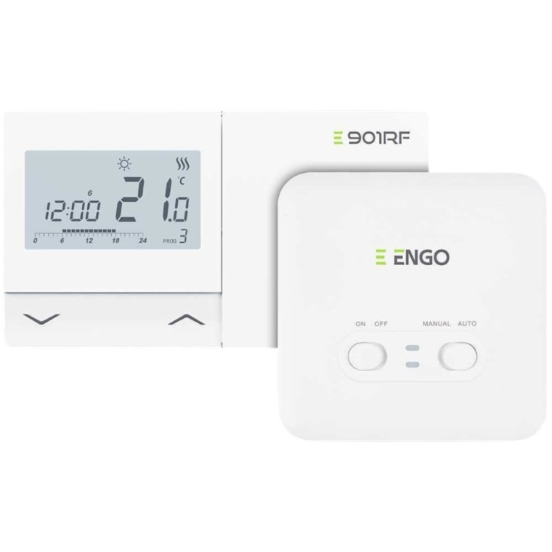 Termostatul ENGO E901RF este un controler electronic modern destinat управării echipamentelor de încălzire și răcire: cazane pe gaz și pe ulei, pompe de căldură și sisteme de aer condiționat. Datorită conexiunii wireless și algoritmilor de control integrați, acesta asigură menținerea precisă a temperaturii și un nivel ridicat de confort în încăpere.