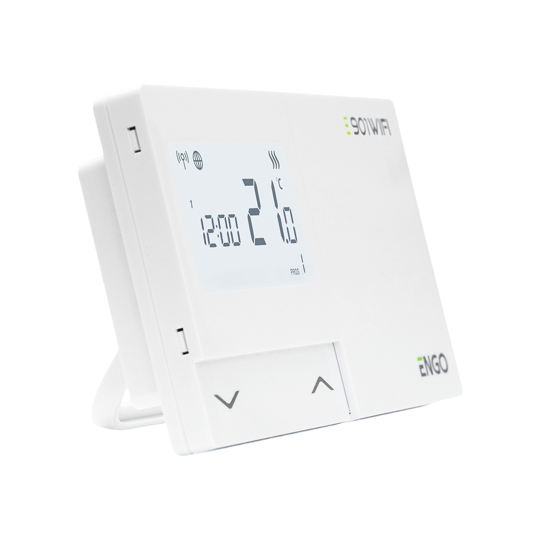 ENGO E901-WIFI este echipat cu un ecran mare și informativ, precum și cu un panou de control glisant, care oferă acces facil la setări. Modelul este livrat cu un suport special, ce permite amplasarea termostatului pe raft sau pe birou, asigurând confort maxim în utilizare și flexibilitate în instalare.