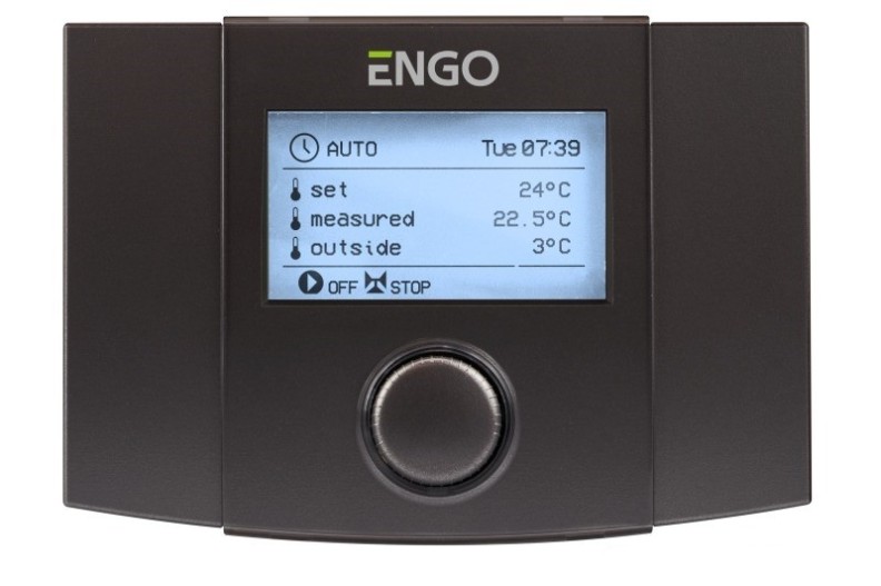 Controlerul climatic ENGO EWT100 reglează temperatura în circuitul de încălzire printr-o valvă cu 3 sau 4 căi, echipată cu un actuator cu 3 poziții.