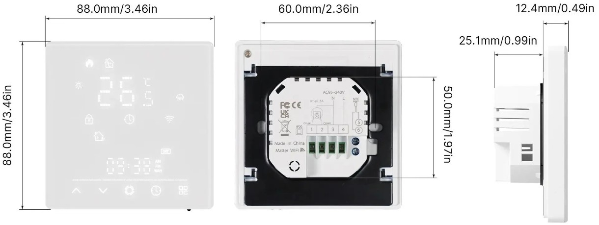 Termostatul inteligent Moes este conceput pentru gestionarea eficientă a sistemelor electrice de încălzire prin pardoseală. Designul modern, minimalist, de culoare albă și suportul pentru cea mai nouă platformă Matter asigură conectare ușoară, control la distanță și eficiență energetică ridicată.