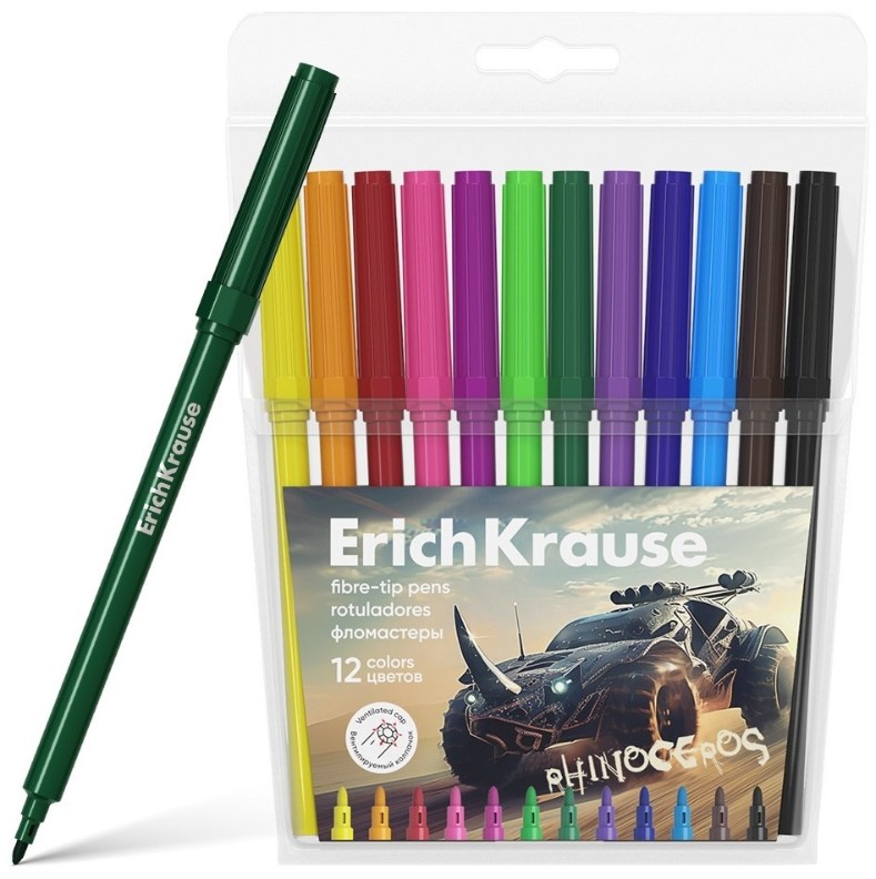 Pixuri cu vârf de pâslă ErichKrause cu cerneală pe bază de apă. Vârful își păstrează forma chiar și după o utilizare îndelungată. Corpul etanș din polipropilenă previne așchiile ascuțite în caz de rupere și previne uscarea cernelii. Pixurile au capace ventilate, colorate în culoarea corpului. Ideale pentru desen și colorat.