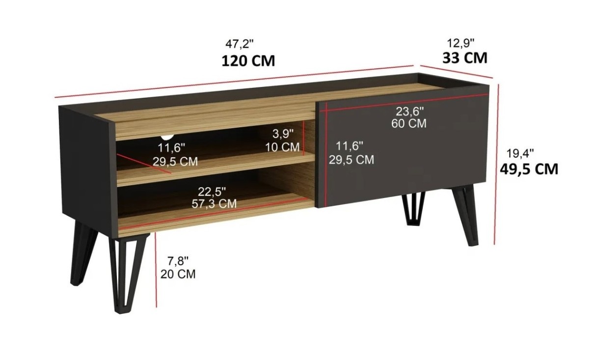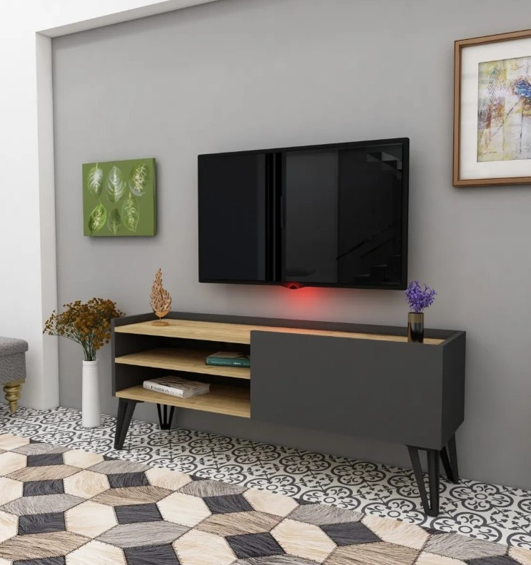 Comodă TV Trendy Veronica Anthracit/Oak/Black 140x49.5x33cm GTR006378