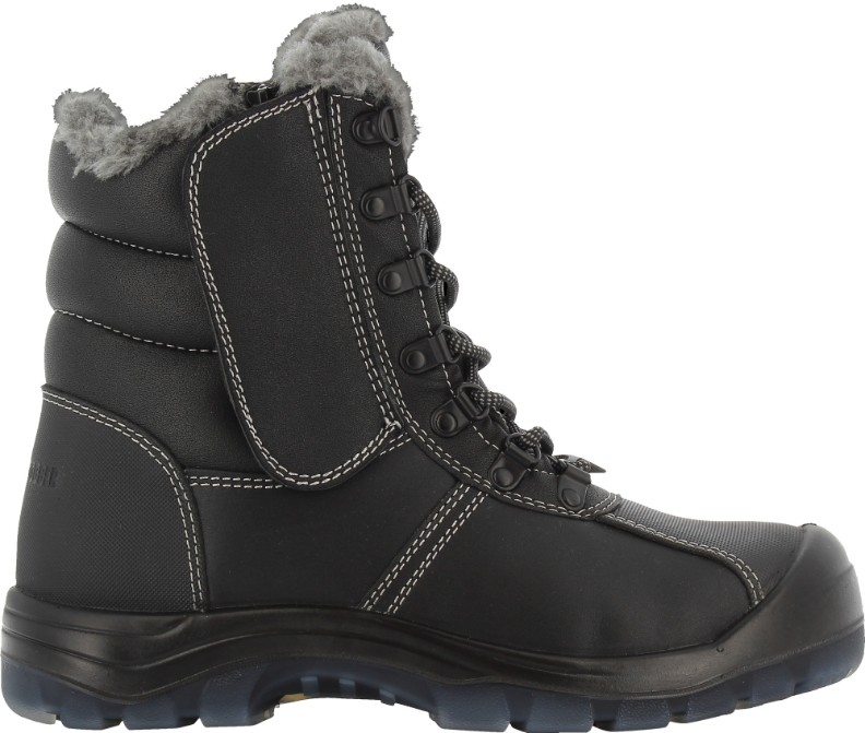 Botine izolate din piele, negri, căptușeală din blană artificială, hidrofugă, vârf din compozit, branț SJ Flex anti-punctură, proprietăți antistatice, talpă anti-alunecare, nu marchează podeaua, protecție suplimentară din PU în zona vârfului, izolată branț, absorbție de șoc în zona călcâiului la mers, elemente reflectorizante, fermoar lateral pentru îmbrăcare ușoară cu clapă de protecție cu velcro, limbă oarbă izolată anti-praf, șiretură sigură, pentru tipurile de picior cu picior standard și înalt, S3, PU/TPU unic