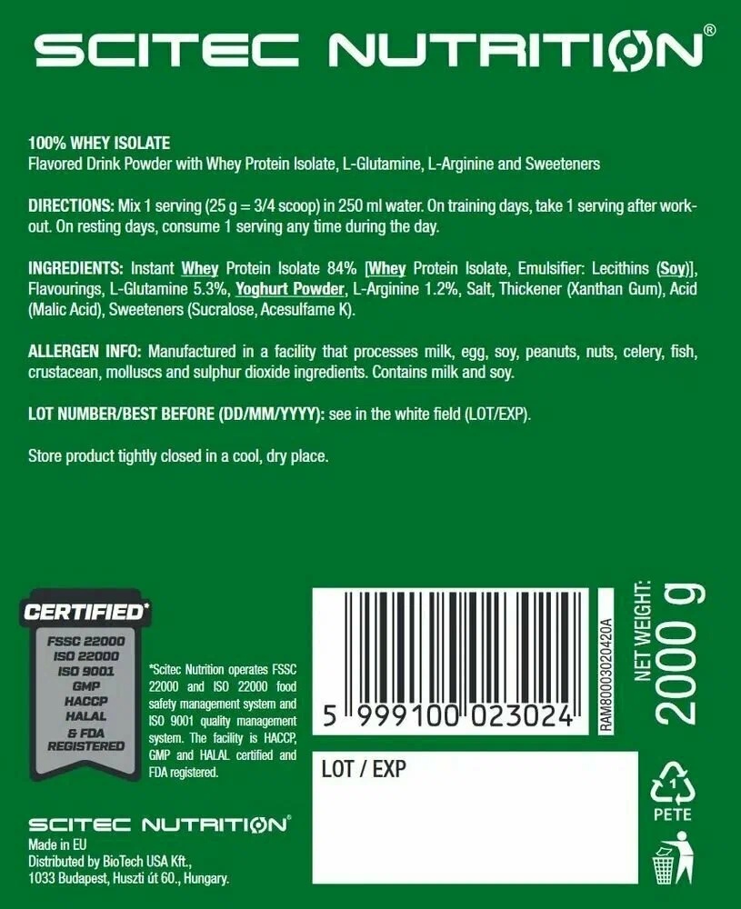 Proteină Scitec-nutrition 100% Whey Isolate 2000g Berry-Vanilla
