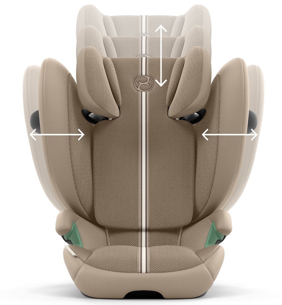 Pe măsură ce copilul tău crește, aripioarele laterale flexibile se ajustează pentru a oferi spațiu suplimentar. În plus, tetiera rabatabilă patentată crește siguranța capului de șapte ori¹, în timp ce sistemul