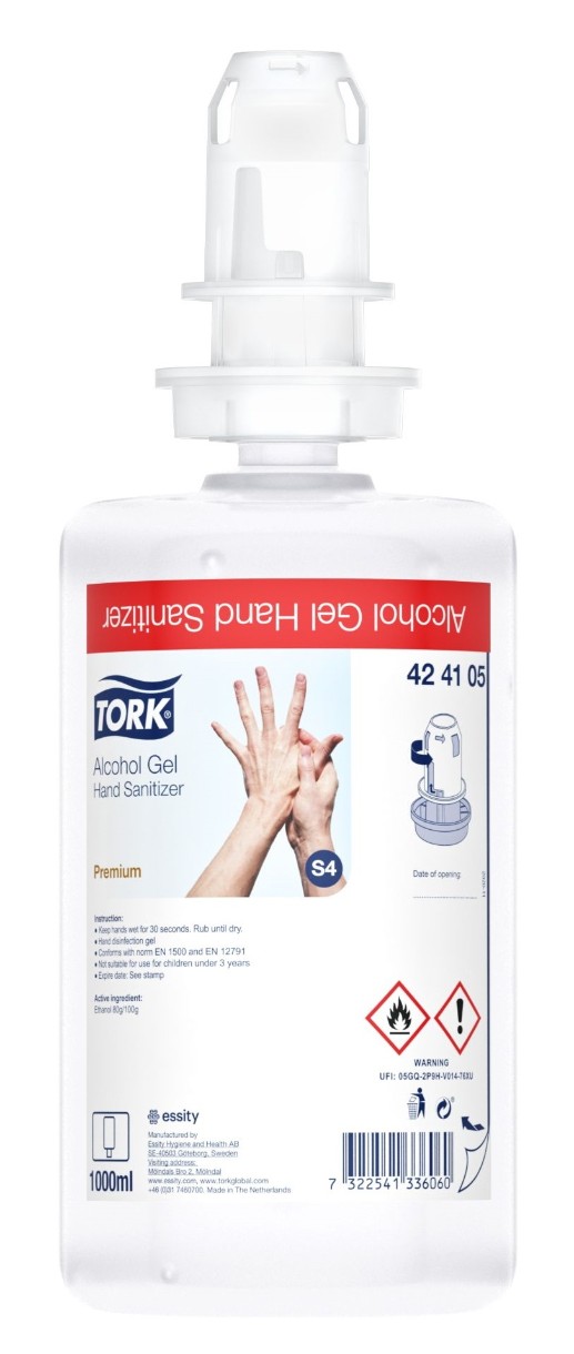 Tork Alcohol Gel Dezinfectant pentru mâini cu 80% alcool denaturat, ucide în mod eficient microorganismele pentru a ajuta la prevenirea răspândirii infecțiilor.