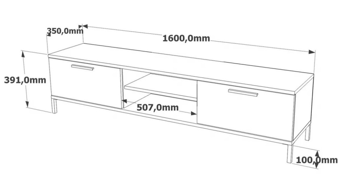 Unitatea TV oferă un spațiu generos pentru dispozitive media, DVD-uri și accesorii, ajutând la menținerea ordinii. Grosimea de 18 mm conferă stabilitate și siguranță pentru depozitarea echipamentelor electronice.