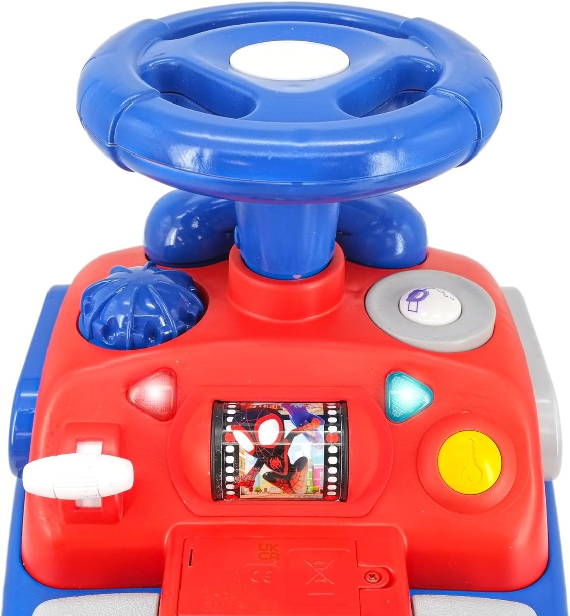 Lăsați spiritul prietenos al Omului-Păianjen să vă însoțească copilul în fiecare călătorie cu mașina Lights „N“ Sounds Dashboard — pentru că fiecare călătorie trebuie să fie o aventură eroică! Panoul de pe volan oferă divertisment electronic interactiv vesel și colorat. Priviți cum fețele lor se luminează de bucurie când se țin de volan și manevrează.