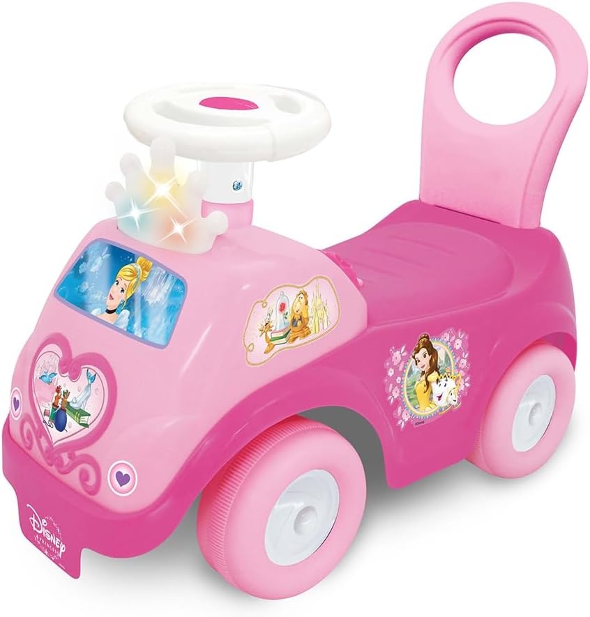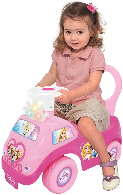 Mașina colorată, realizată în stilul popularelor prințese ale studioului Disney, va oferi copilului o mulțime de emoții pozitive din mersul cu mașina și jocul cu personajele din desene animate. Construcția robustă și sigură va face mersul cu mașina mai confortabil. Pe panoul de control al mașinuței sunt amplasate diverse butoane funcționale și imagini. Copilul se va distra cu lumini intermitente, melodii plăcute și sunete amuzante, precum și cu sunete realiste ale motorului și ale claxonului.