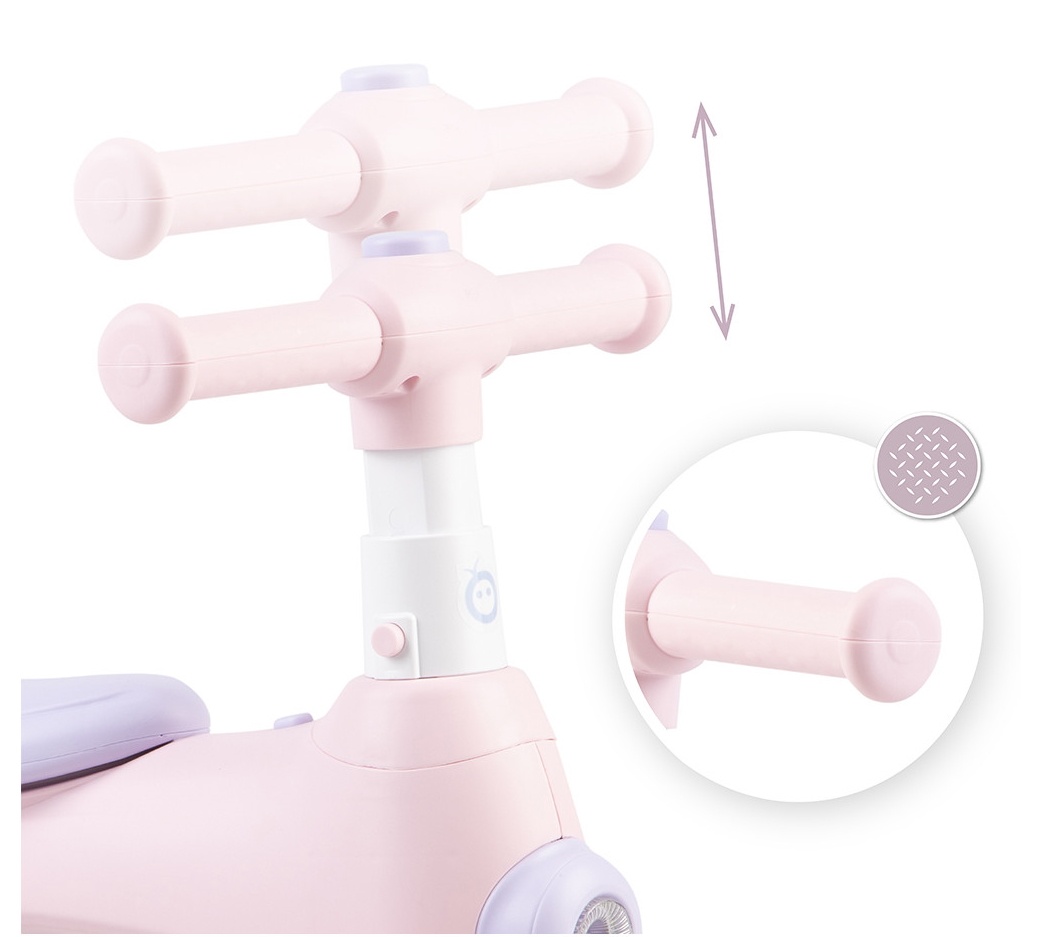 MoMi TOBIS nu este doar atractiv pentru functiile sale, ci si foarte practic si sigur. Pe ghidon este prevazuta o protectie antiderapanta, care asigura stabilitate copilului. Ghidonul are o reglare pe inaltime in 3 puncte, astfel incat sa-l poti potrivi copilului tau.