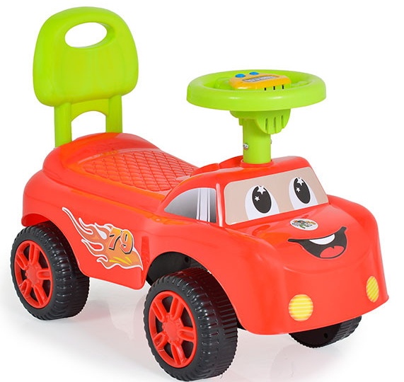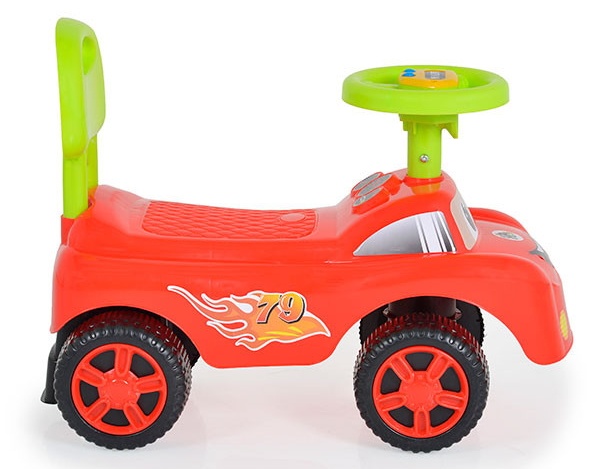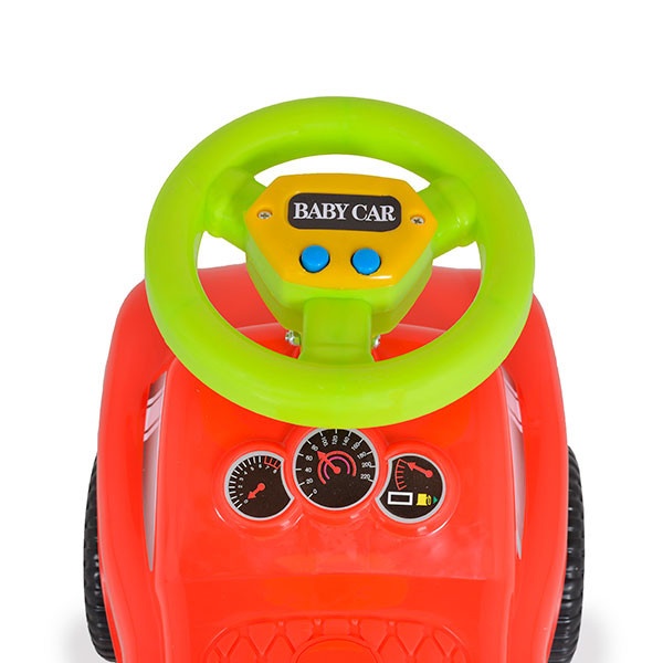 Mașina de călărie din plastic pentru copii are un design care contribuie la dezvoltarea motorului și echilibrul copilului.