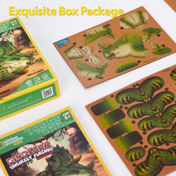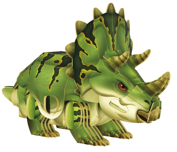 Acest puzzle tridimensional de la National Geographic Kids le oferă copiilor ocazia de a asambla propriul Triceratops, explorând astfel lumea creaturilor preistorice. Designul său inteligent permite îmbinarea pieselor fără lipici sau unelte, ceea ce face procesul de asamblare plăcut și accesibil. Cu un aspect viu colorat și detalii realiste, acest dinozaur devine nu doar o jucărie captivantă, ci și un decor interesant pentru cameră.