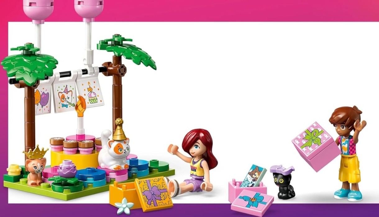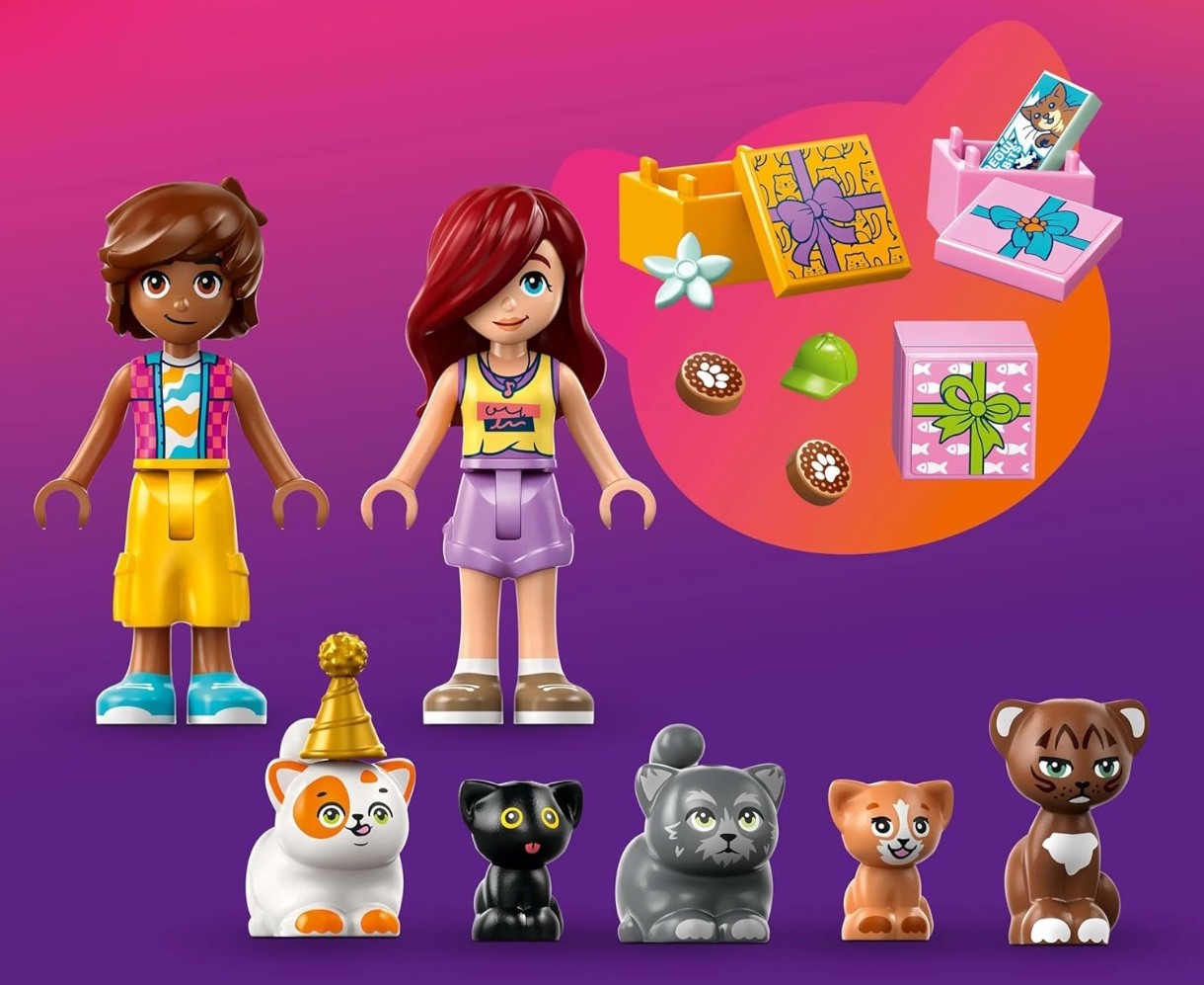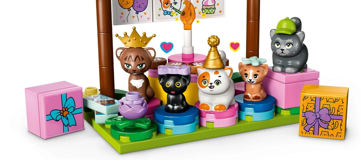 Această jucărie distractivă pregătește scena pentru petrecerea de ziua de naștere a lui Churro. Există, de asemenea, 4 prieteni pisici Churro, plus personajele LEGO Friends Leo și Paisley. Explorează detalii distractive, inclusiv cadouri de ziua de naștere, bannere și baloane în formă de pisică. Copiilor le va plăcea să conducă animalele de companie în jurul căsuței în copac cu pisici, care conține o piñată în formă de pește, jucării pentru pisici, iarbă pentru pisici, fântână arteziană și litiera. Apoi este timpul ca pisicile să se așeze la masa rotativă și să se bucure de tortul de ziua de naștere al lui Churro.