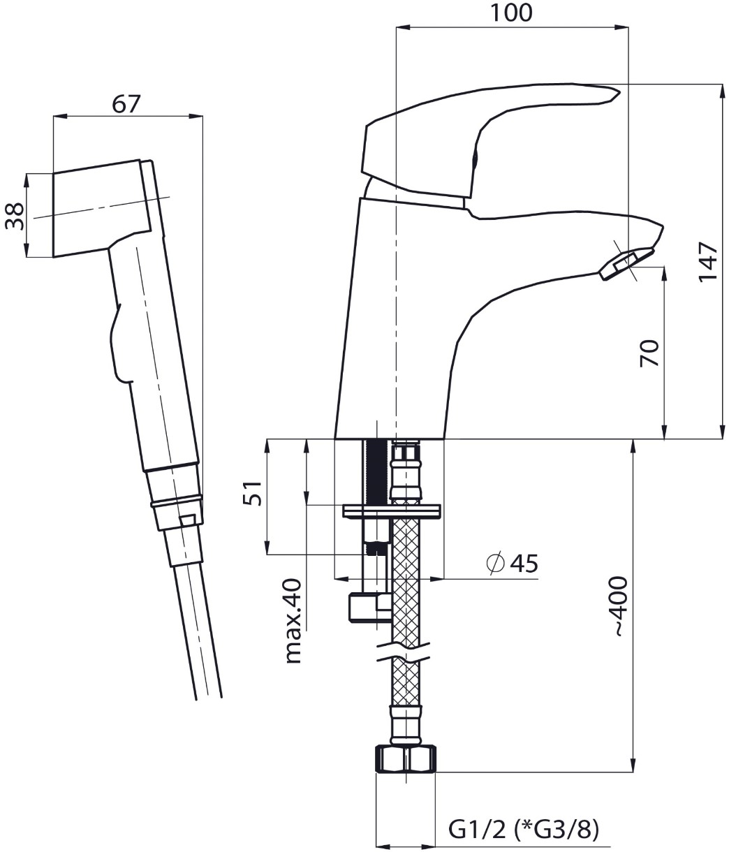 Baterie pentru bideu Rubineta Tornado-17 (TR70008)