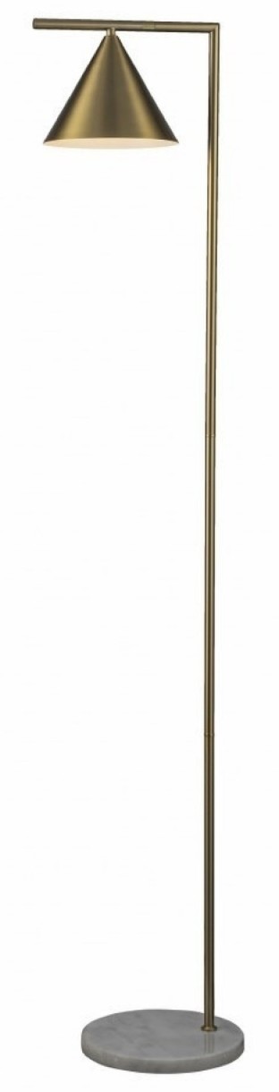 Lampadarul care se remarcă printr-un design rafinat și contemporan. Structura sa subțire și stilizată, realizată din alamă mată, susține un abajur metalic conic, oferind o lumină direcționată, ideală pentru citit sau pentru crearea unei atmosfere confortabile.