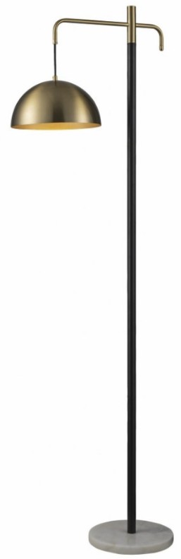 LP623-1F este o lampă de podea care se remarcă prin îmbinarea designului industrial cu eleganța modernă. Structura sa subțire din metal negru mat contrastează cu brațul din alamă mată, pe care este montat un abajur semisferic auriu. Această combinație de finisaje îi conferă un aspect rafinat și versatil, potrivit atât pentru interioare moderne, cât și clasice.