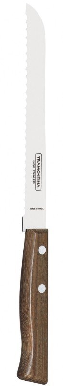 Cuțit pentru pîine Tramontina Tradicional cu lama de 17.5 cm, cu mîner comod din lemn. Este fabricat din oțel inoxidabil de înaltă calitate AISI 420. Calitatea oțelului asigură faptul că produsele Tramontina nu sunt susceptibile coroziunii și (la păstrarea condițiilor de expluatare ) își vor păstra luciul pentru o perioadă lungă de timp.
