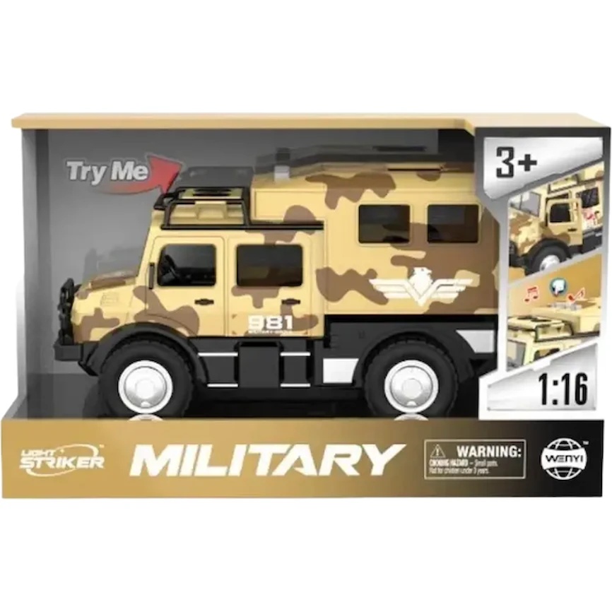 Mașina militară blindată inerțială – este jucăria perfectă pentru misiuni curajoase și joacă plină de acțiune. Cu un design realist de camuflaj, uși care se deschid și efecte luminoase și sonore, vehiculul face ca jocul să fie mai captivant și mai realist.