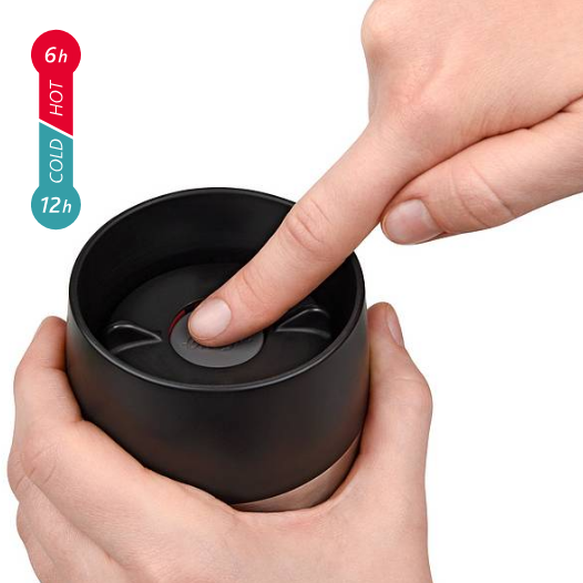 Toate produsele TRAVEL MUG sunt echipate cu sistemul capacului QUICK PRESS. Ingenios până la ultimul detaliu — ușor de utilizat.