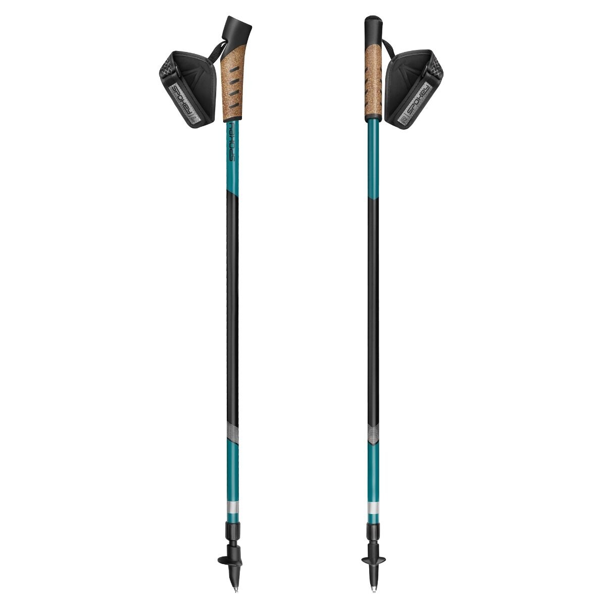 Bețele sunt dotate cu vârfuri din carbură, care asigură durabilitate și rezistență sporită la uzură. Mânerele ergonomice din plută se adaptează perfect mâinii, iar curelele detașabile cu elemente reflectorizante sporesc siguranța. Setul include două capete din cauciuc pentru mersul pe asfalt. Sunt ideale pentru utilizare atât vara, cât și iarna.