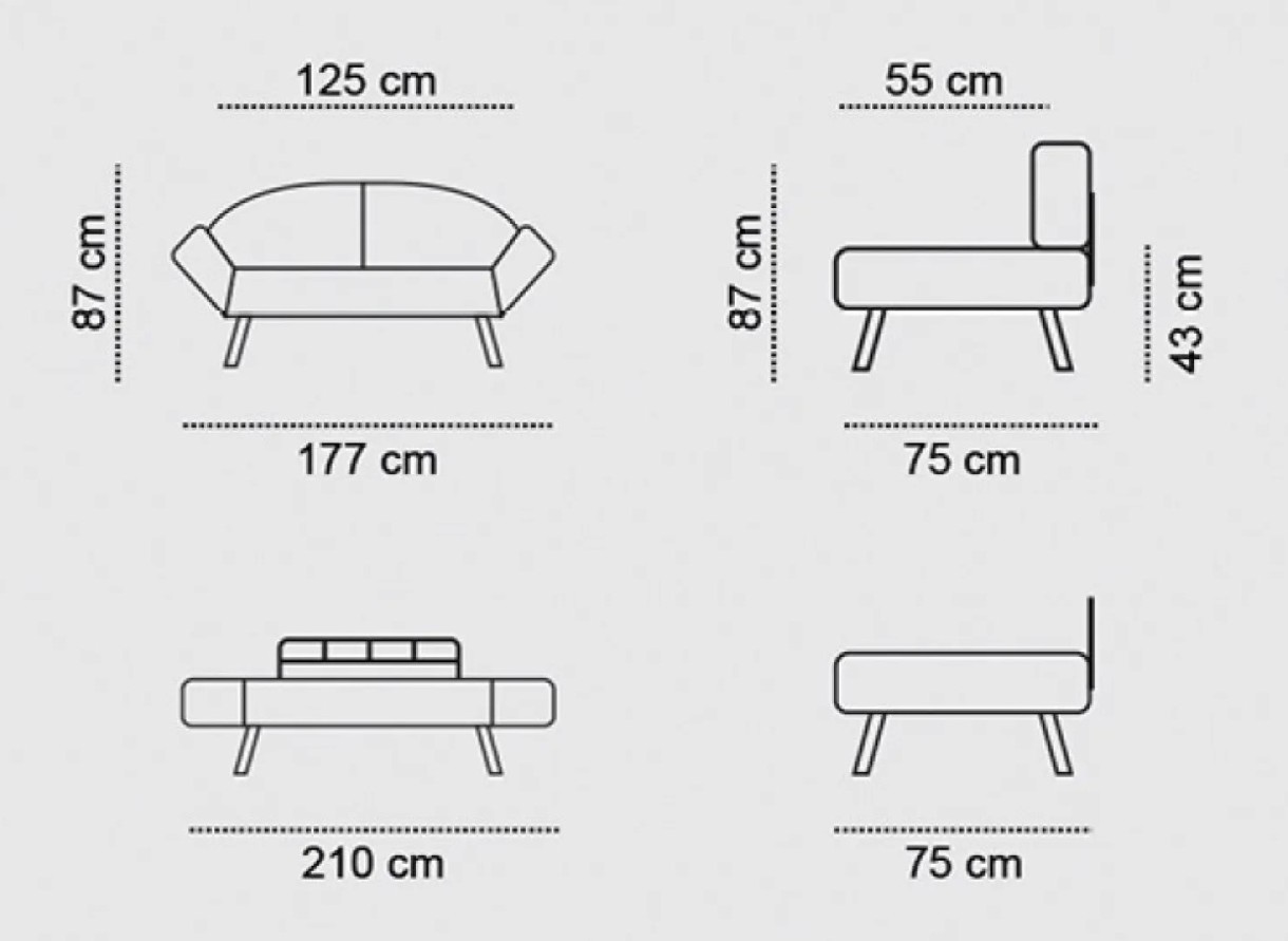 Dimensiunea canapelei (l×L×Î)177x75x87 cm