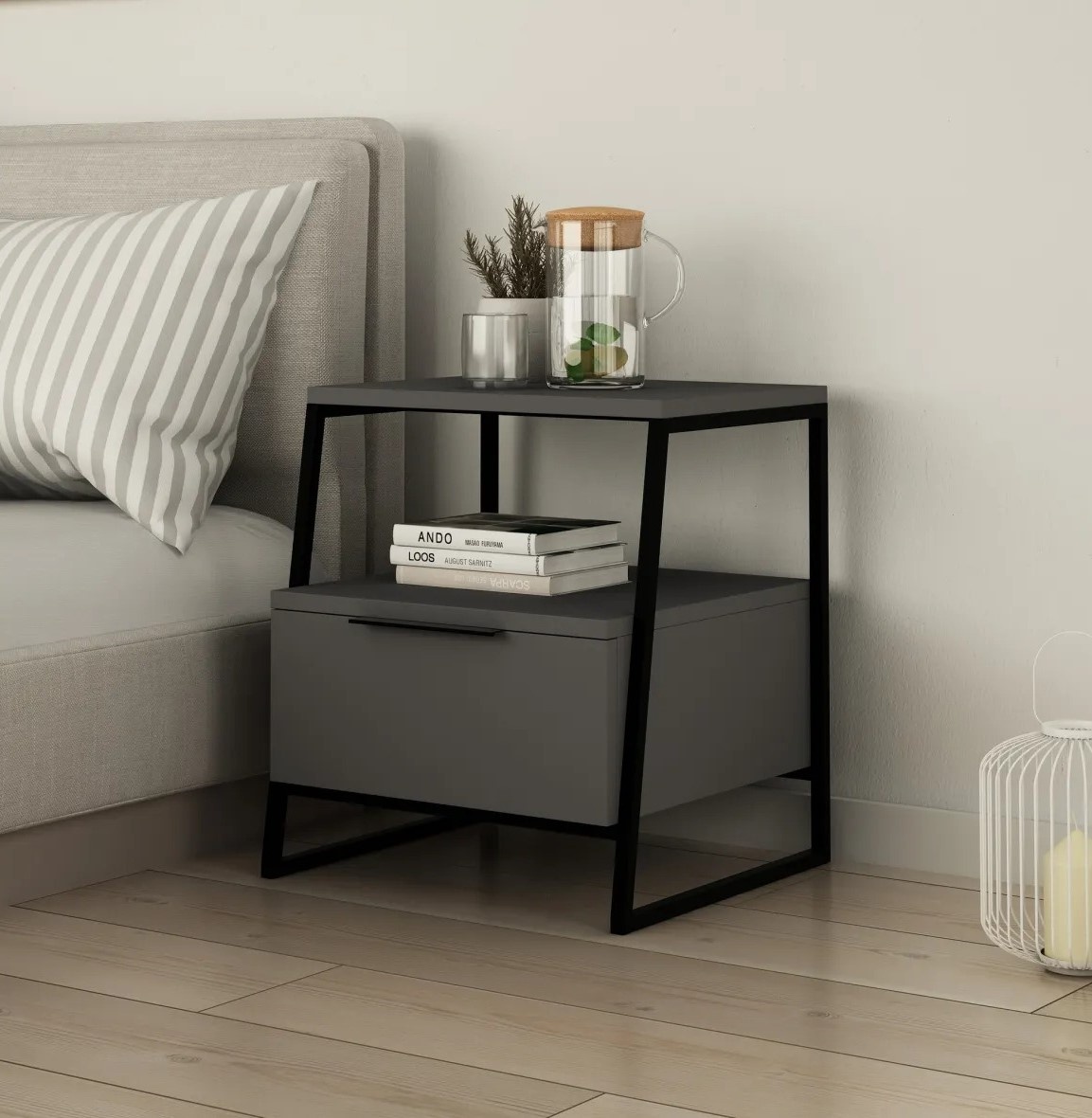 Cu un concept modern, noptiera se integrează cu ușurință în orice stil interior. Fie că preferi o atmosferă inspirată de hotel, o notă industrială sau simplitatea scandinavă, această piesă completează armonios spațiul.