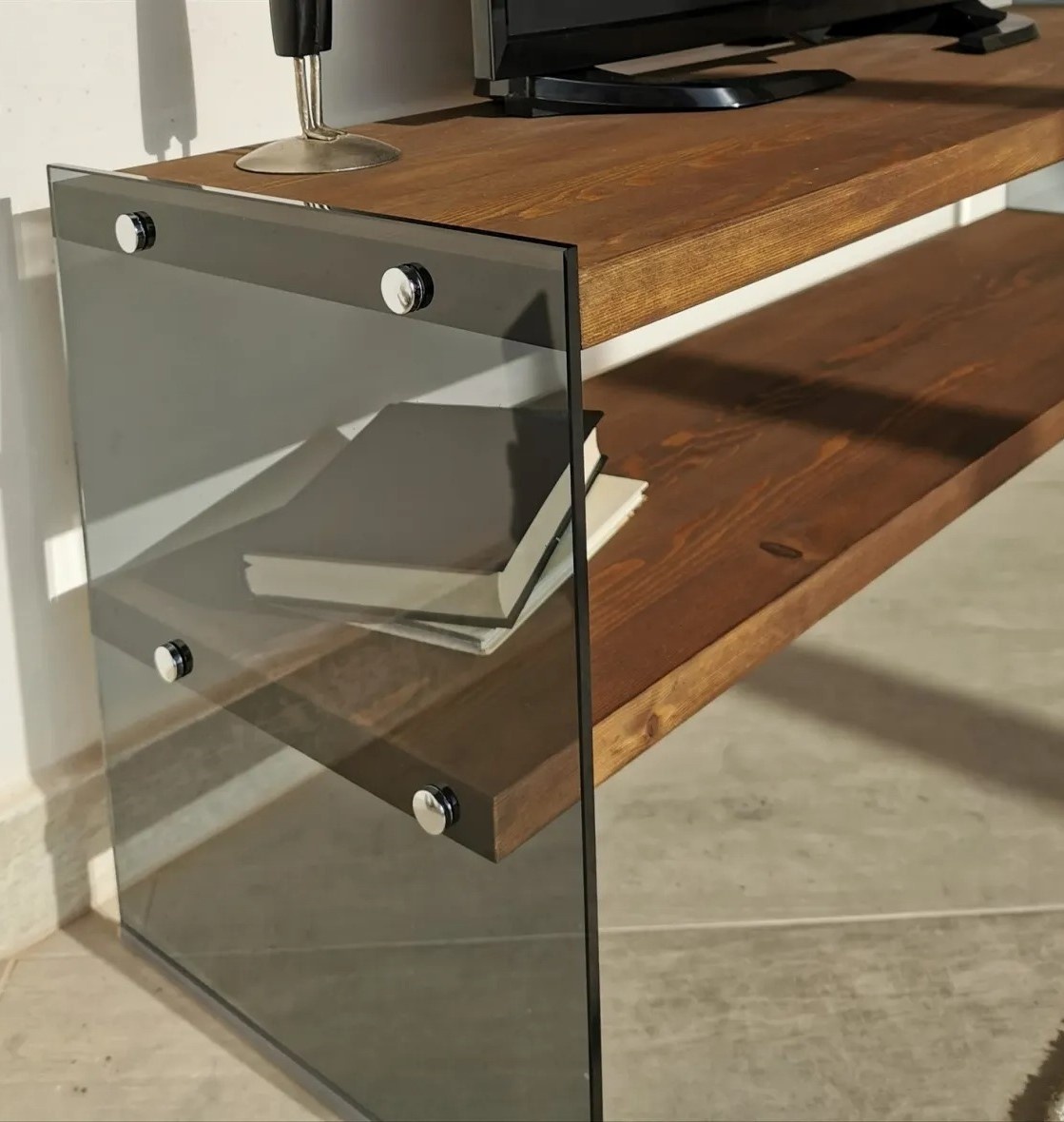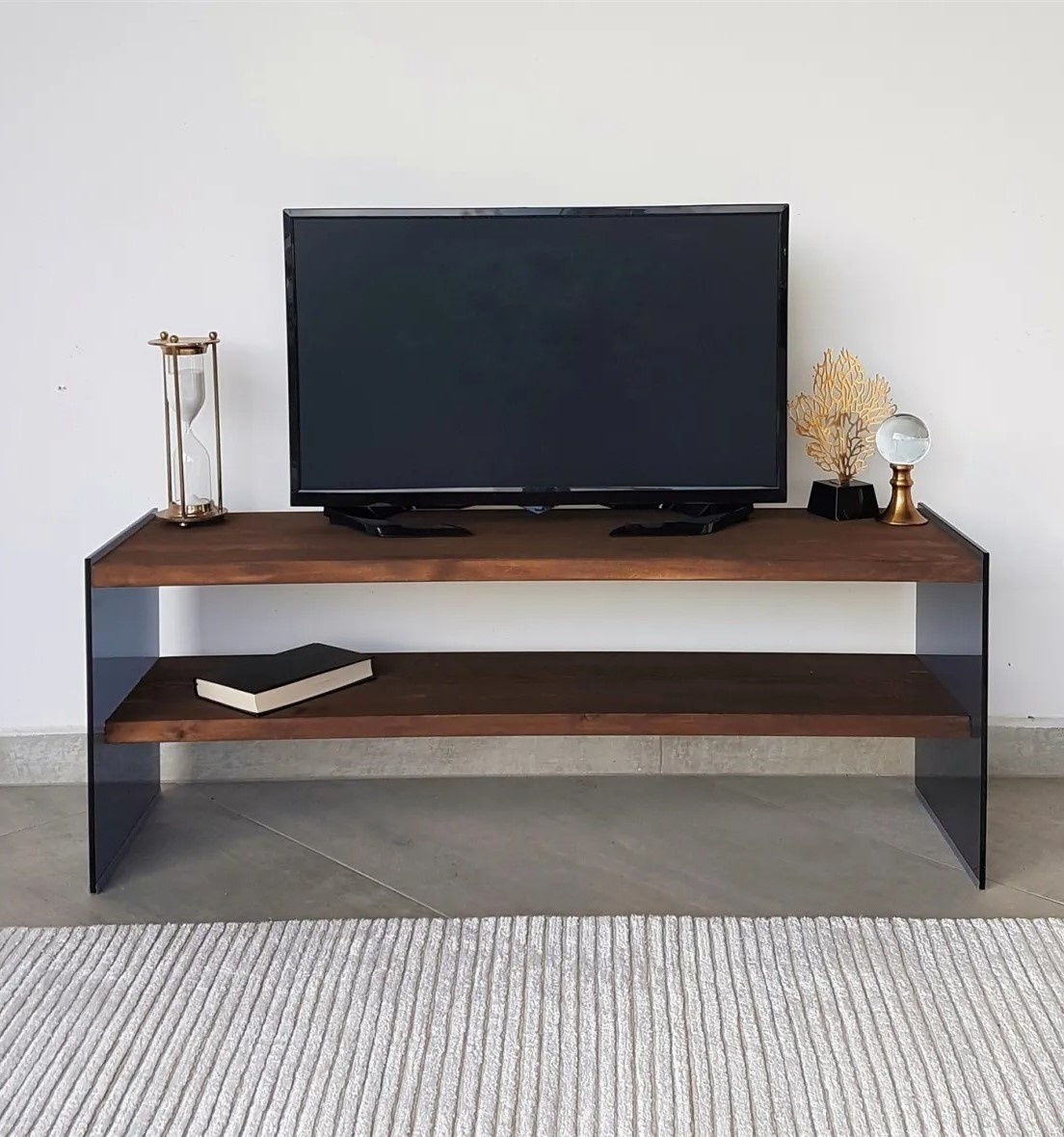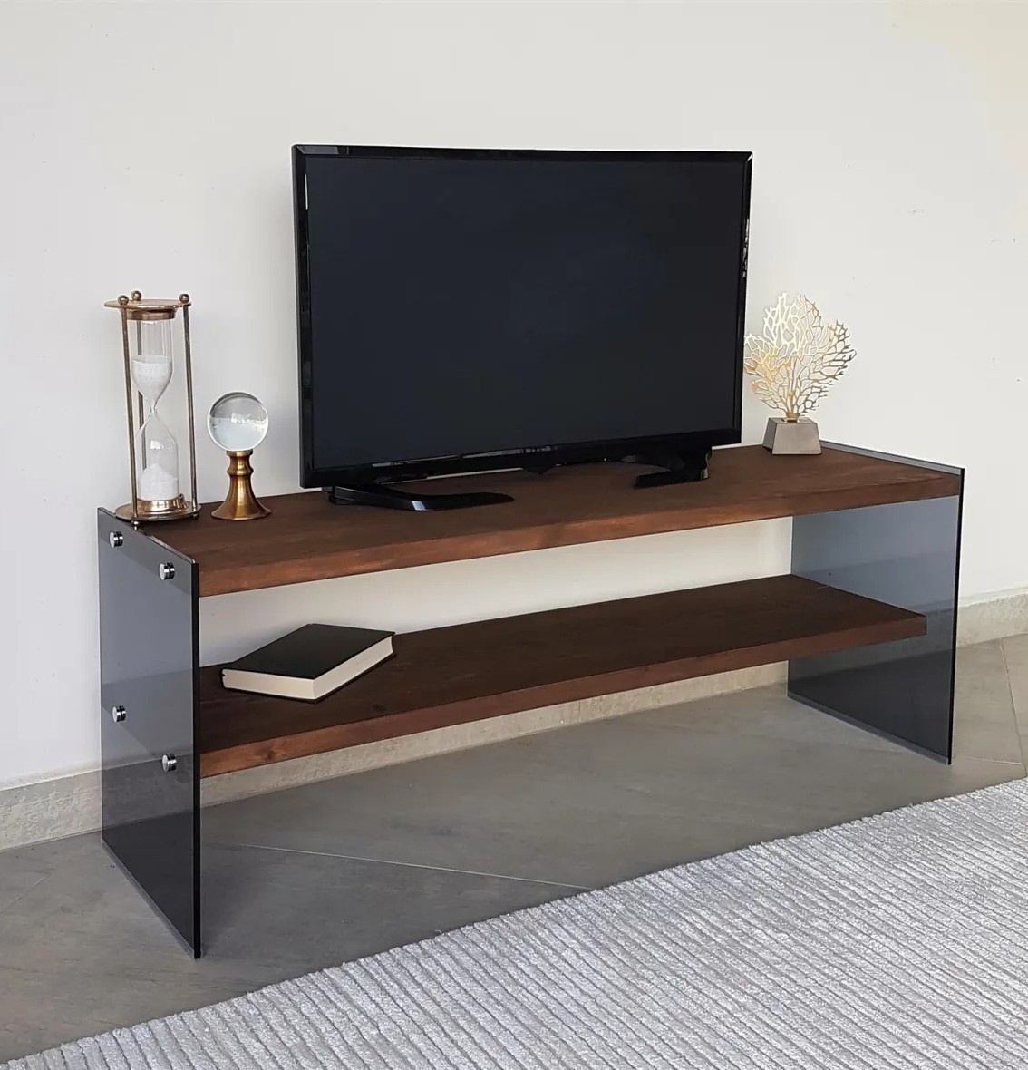 Cu grosimea de 8 mm, suportul este construit pentru durabilitate. Cadrul din sticlă călită garantează stabilitate și siguranță. Fiecare raft suportă până la 20 kg, permițând plasarea televizorului, consolelor de jocuri și altor dispozitive media.