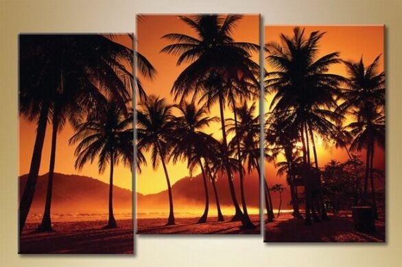 Pictură Gallerix Triptych of palm trees at sunset (1529821)