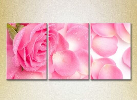 Pictură Gallerix Triptych Pink rose and petals (2699468)