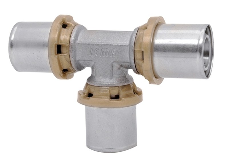 T‑fiting Icma 81406GPGHGP06 este un fiting presat de tip „T” cu racorduri combinate (filet–presă–filet), conceput pentru distribuirea curată și fiabilă a trei secțiuni de conducte în sistemele de alimentare cu apă, încălzire și răcire. Acest fiting facilitează montajul rețelelor inginerești datorită modului practic de conectare, asigură o funcționare stabilă a întregului sistem atât în aplicații casnice, cât și profesionale și combină o construcție robustă cu execuție de calitate.