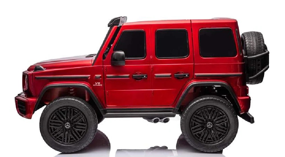 Mașina electrică Mercedes-Benz G63 în versiune vopsită este un model realizat cu atenție la detalii și finisaje. Designul robust, inspirat de celebrul SUV G-Class, este completat de o caroserie vopsită cu finisaj lucios de tip auto, care oferă o culoare intensă și un aspect elegant, apropiat de cel al unei mașini adevărate.