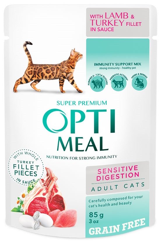 Hrană umedă pentru pisici Optimeal Adult Cats Sensitive Digestion Lamb & Turkey 85g