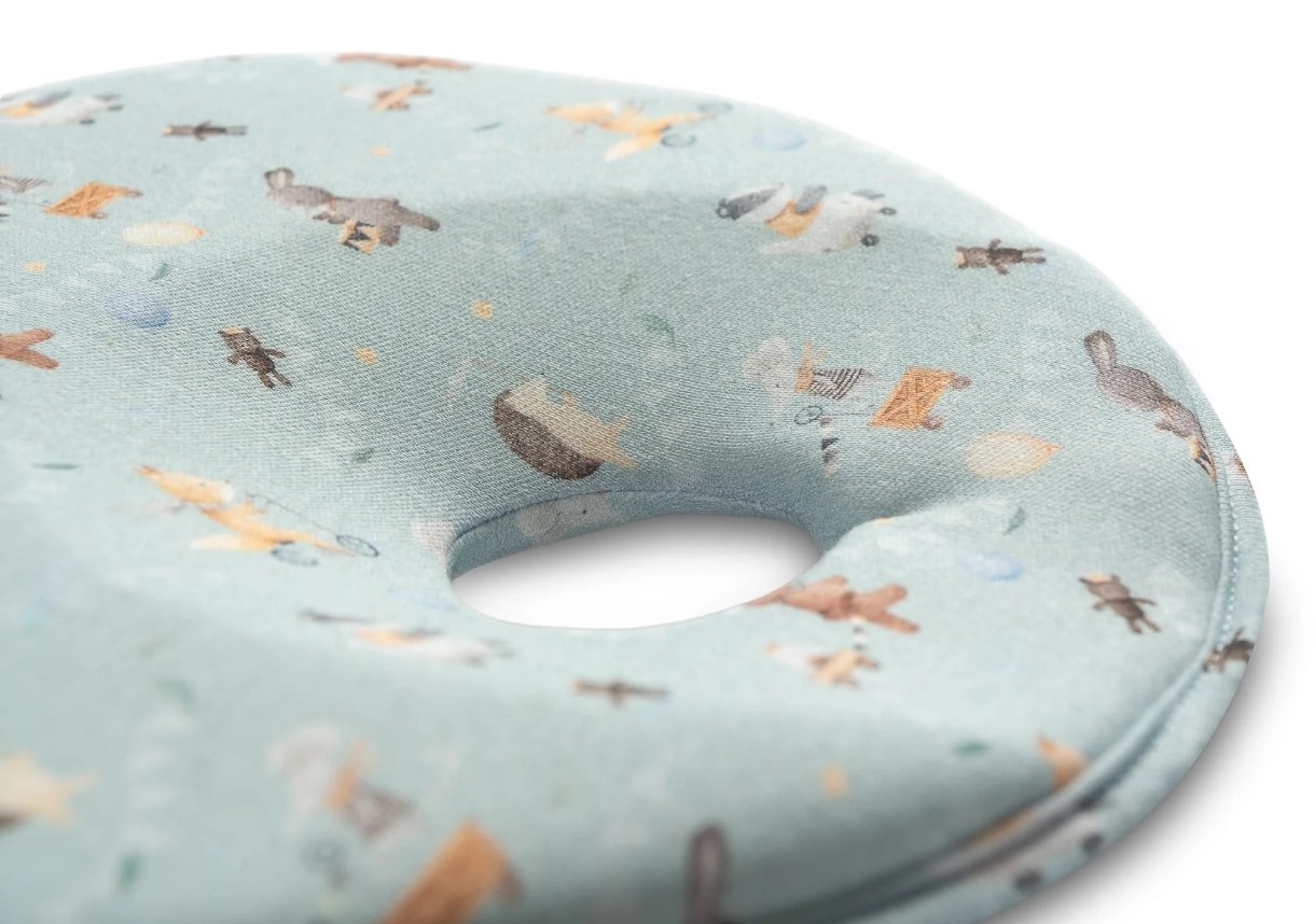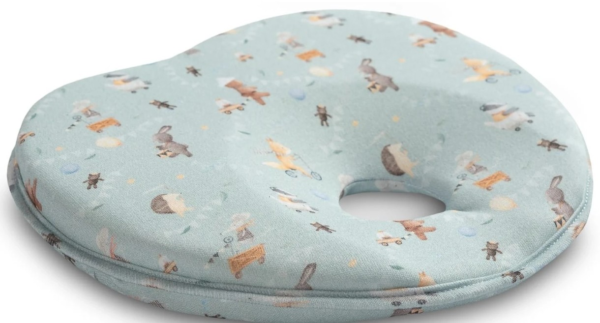 Pernă ergonomică care susține formarea corectă a capului copilului. Datorită modelării speciale și umpluturii din burete care nu se deformează, reduce presiunea punctiformă a capului copilului pe sol. Ajută capul bebelușului să capete o formă naturală, rotundă. Fabricată dintr-un material colorat, plăcut la atingere.
