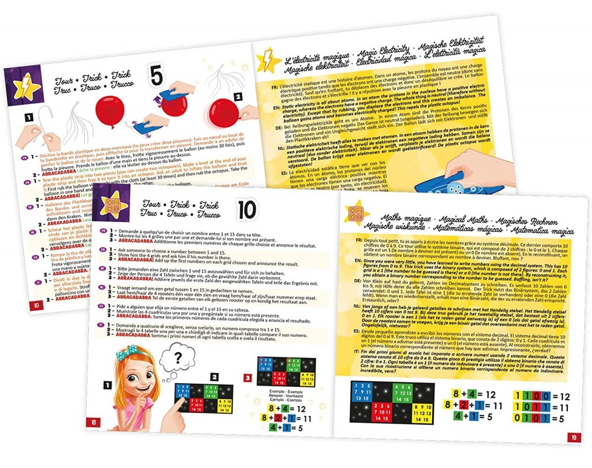 Descopera un set de experimente magice realizate cu ajutorul stiintei pe intelesul copiilor. Intr-o maniera distractiva, prin trucurile-experimente propuse, puteti face ca obiectele sa leviteze folosind electricitate statica, puteti schimba starea de agregare a apei sau puteti produce iluzii optice. Setul include nisip magic care se usuca intr-o clipita.