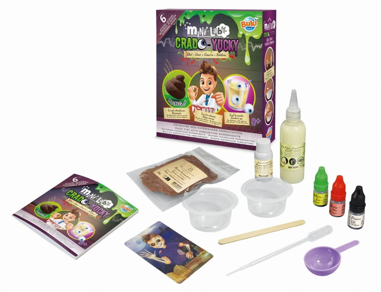 Un set care contine sase experimente ciudate: viermi mucosi, ochi care picura, mingi care sari...