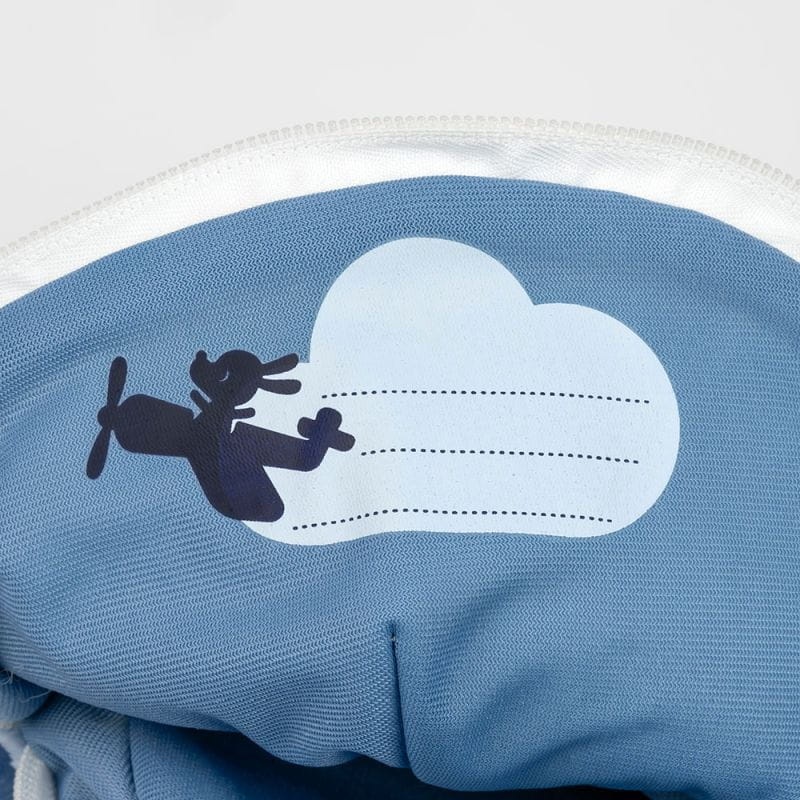 Rucsac fermecător Lilliputiens, într-o combinație de albastru și alb, cu forma unui câine. Rucsacul are bretele reglabile și un buzunar spațios cu fermoar pe spate, perfect pentru depozitarea micilor comori. Lilliputiens combină designul distractiv cu ușurința în utilizare.
