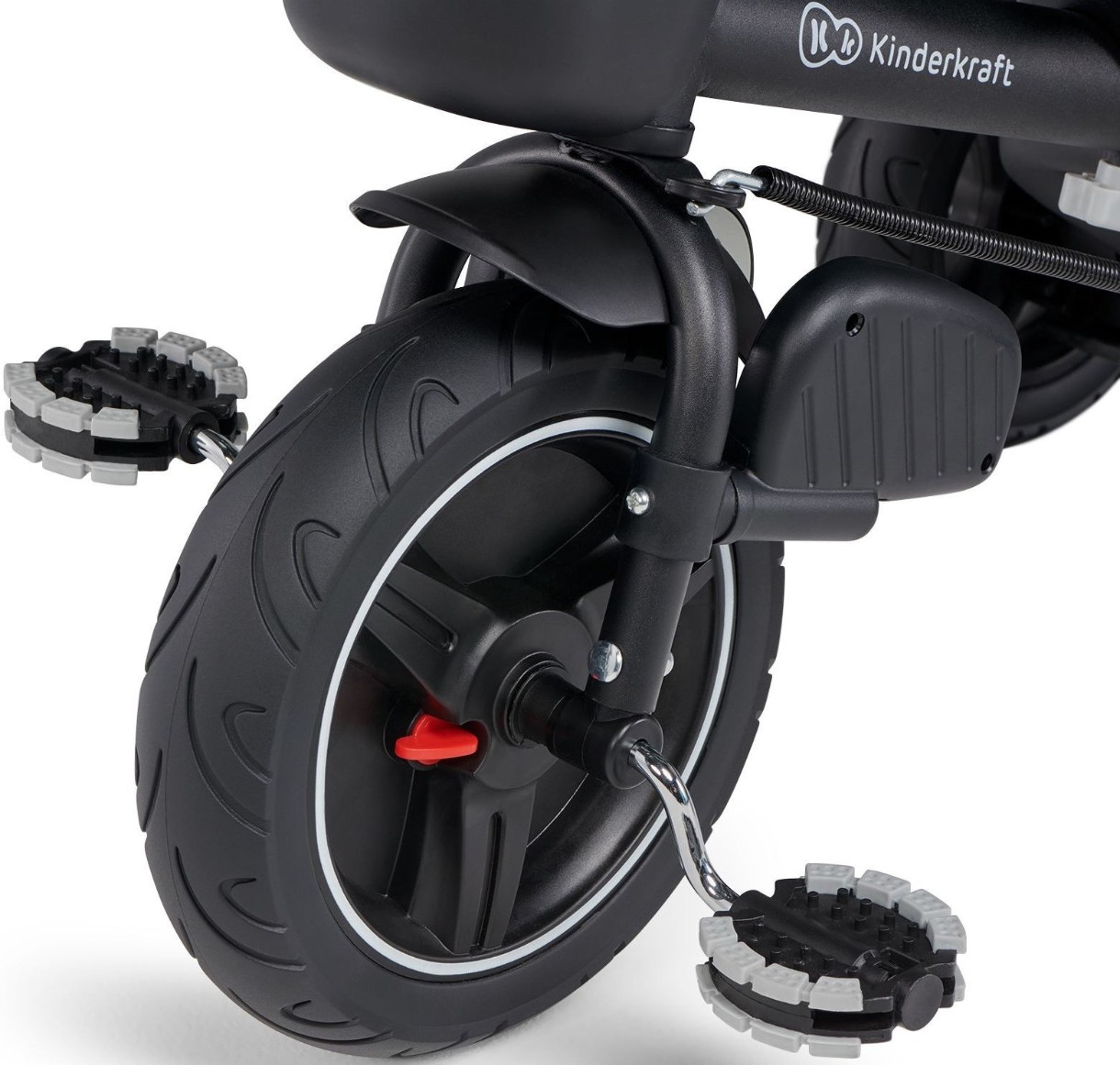 Tricicleta SPINSTEP este echipată cu o funcție specială de pedalare liberă. Asta înseamnă că poți decupla angrenajul roții din față de pedale, iar copilul poate pedala energic fără să controleze viteza — controlul rămâne la părinte, pentru o plimbare sigură și plăcută.