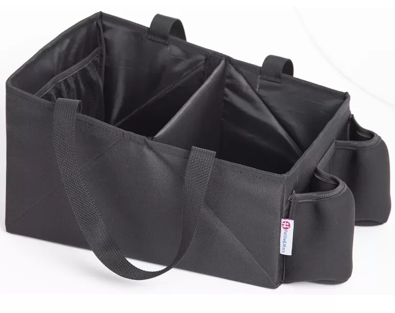 Un compartiment interior mare, cu separatoare și buzunare din plasă, îți permite să-ți organizezi cu grijă lucrurile și să-ți aranjezi rapid mașina. Partea frontală a cutiei are două suporturi pentru sticle sau termosuri. Poți folosi acest organizator pentru a depozita jucării, gustări, scutece, șervețele umede și orice altceva îți poți imagina.