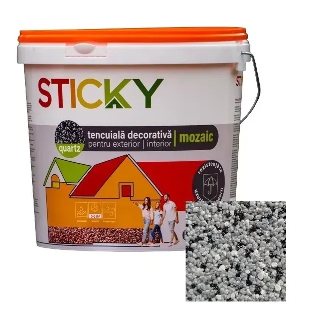 Email Sticky Mozaic M202 2310083 25 kg este destinată finisajelor decorative ale suprafețelor interioare și exterioare. Se utilizează pentru crearea de acoperiri texturate cu efect de mozaic sau model structural. Are o plasticitate ridicată și aderență bună la diverse tipuri de baze, inclusiv beton, cărămidă, mortar ciment-nisip și plăci de gips-carton. Asigură un strat durabil, rezistent și estetic, protejat împotriva factorilor atmosferici și a solicitărilor mecanice.