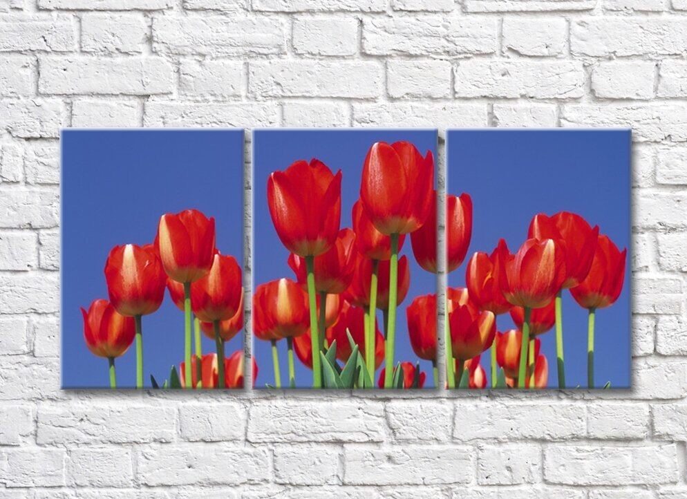 Pictură Rainbow Red tulips against blue sky background (500355)