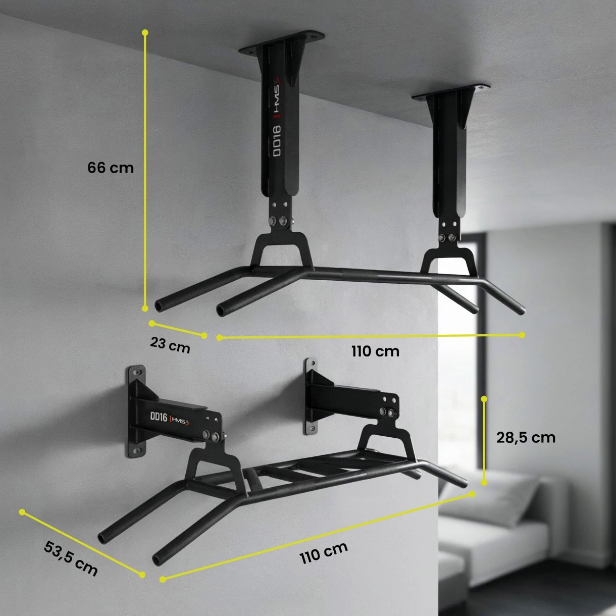 Bara de tracțiuni HMS DD16 este un echipament multifuncțional pentru antrenamente acasă, ideal pentru dezvoltarea musculaturii părții superioare a corpului. Datorită construcției inteligente, poate fi montată atât pe perete, cât și pe tavan, oferind flexibilitate maximă în organizarea spațiului de antrenament.