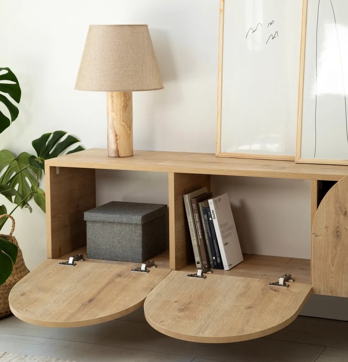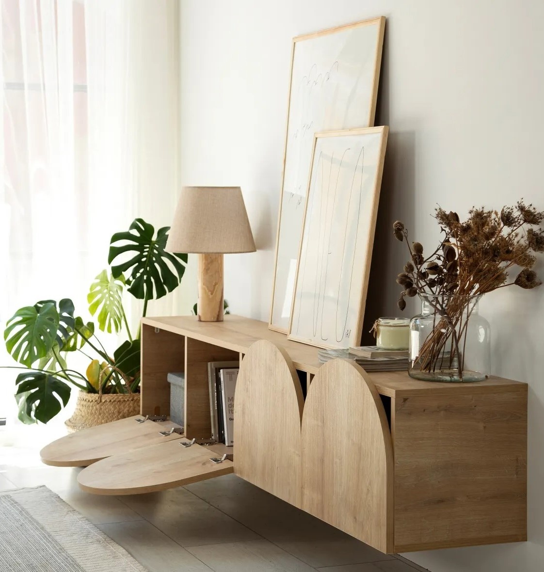 Spațiul generos de depozitare permite aranjarea ordonată a dispozitivelor media, a consolelor și a accesoriilor, contribuind la menținerea unei ambianțe curate. Construcția dezasamblată facilitează montarea și adaptarea în funcție de necesități.