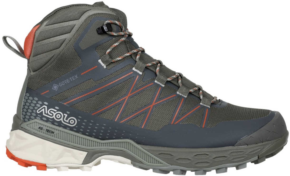 Asolo Tahoe Mid GTX — ghete de drumeție pentru drumeții rapide pe terenuri variate. Versiunea cu înălțime mijlocie oferă suport suplimentar pentru glezne și protejează împotriva pătrunderii pietrelor în cizmă. Partea superioară este realizată din nailon durabil, cu un finisaj hidrofug pentru protecție împotriva intemperiilor și respirabilitate excelentă. Căptușeala cu o membrană impermeabilă Gore-Tex Extended Comfort Footwear oferă protecție completă împotriva precipitațiilor. Această versiune a membranei are izolație minimă și nu împiedică evaporarea umezelii din interiorul pantofului.