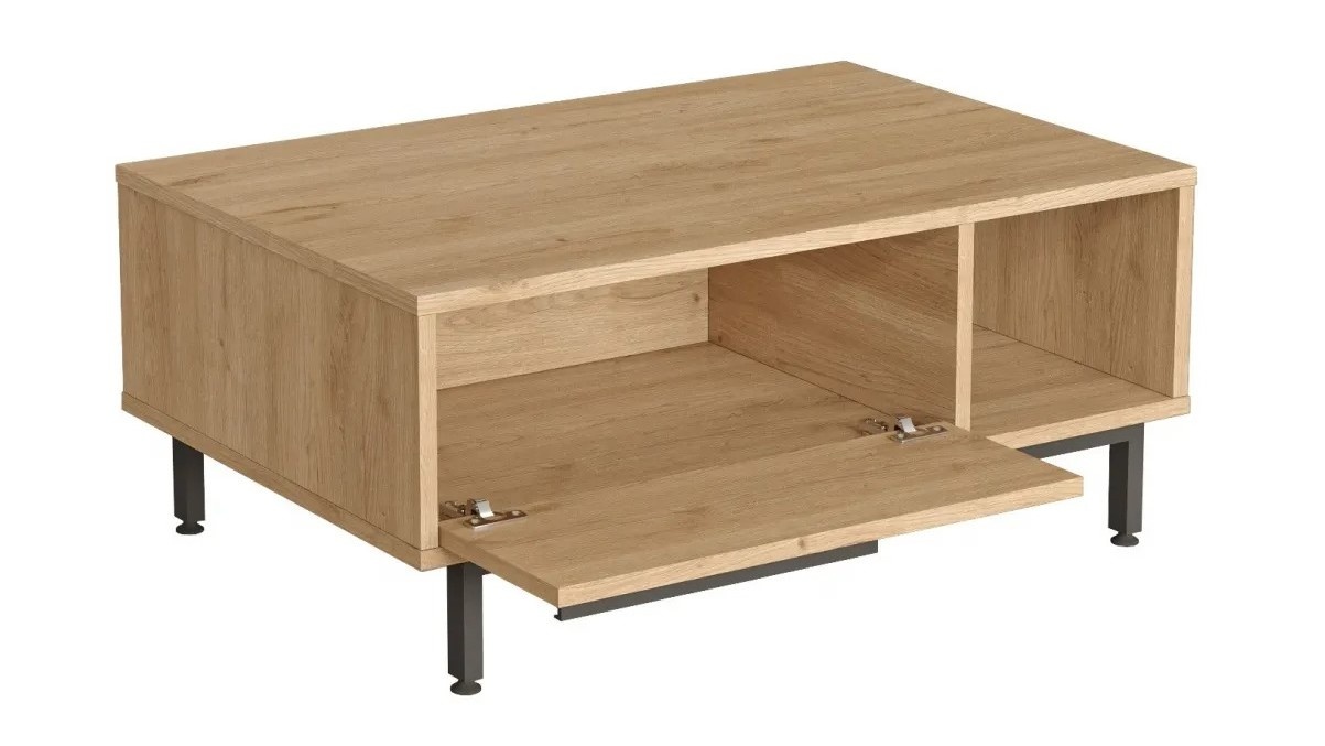Echipată cu picioare metalice, măsuța de cafea asigură stabilitate și suport excelent. Aceasta rămâne fermă chiar și în timpul utilizării intense sau atunci când așezați obiecte mai grele pe suprafață. Dimensiunile de 90 cm lățime, 37.6 cm înălțime și 60 cm adâncime oferă suficient spațiu pentru cești, cărți sau elemente decorative.