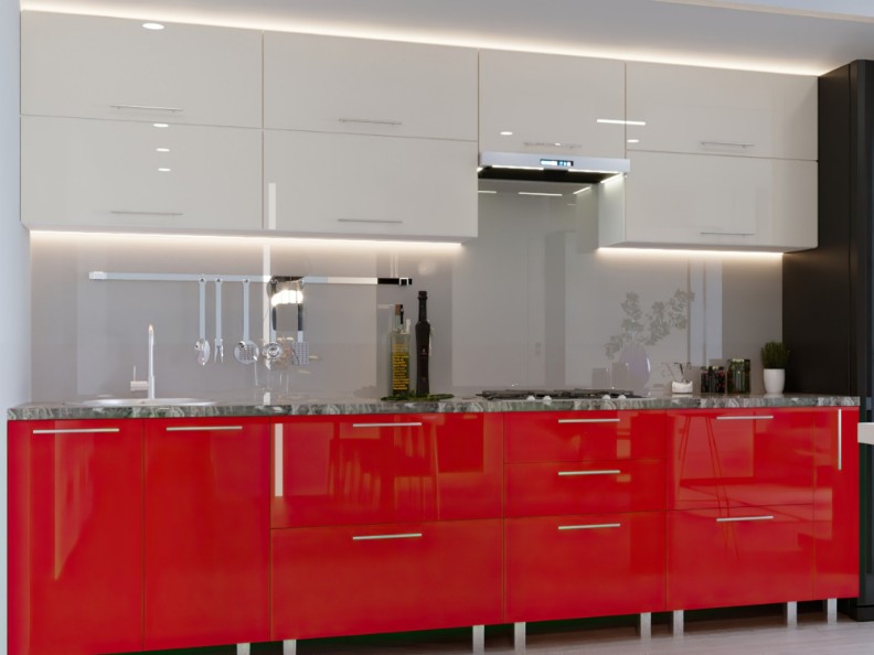Bucătărie Bafimob Quadro (High Gloss) 3.0m +tandembox Beige/Red