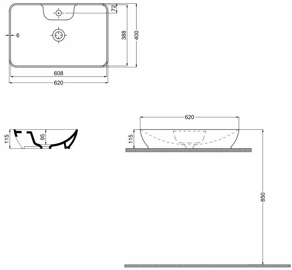 Lavoar QuarterBath Smooth Line 620x400x200 (114331)
